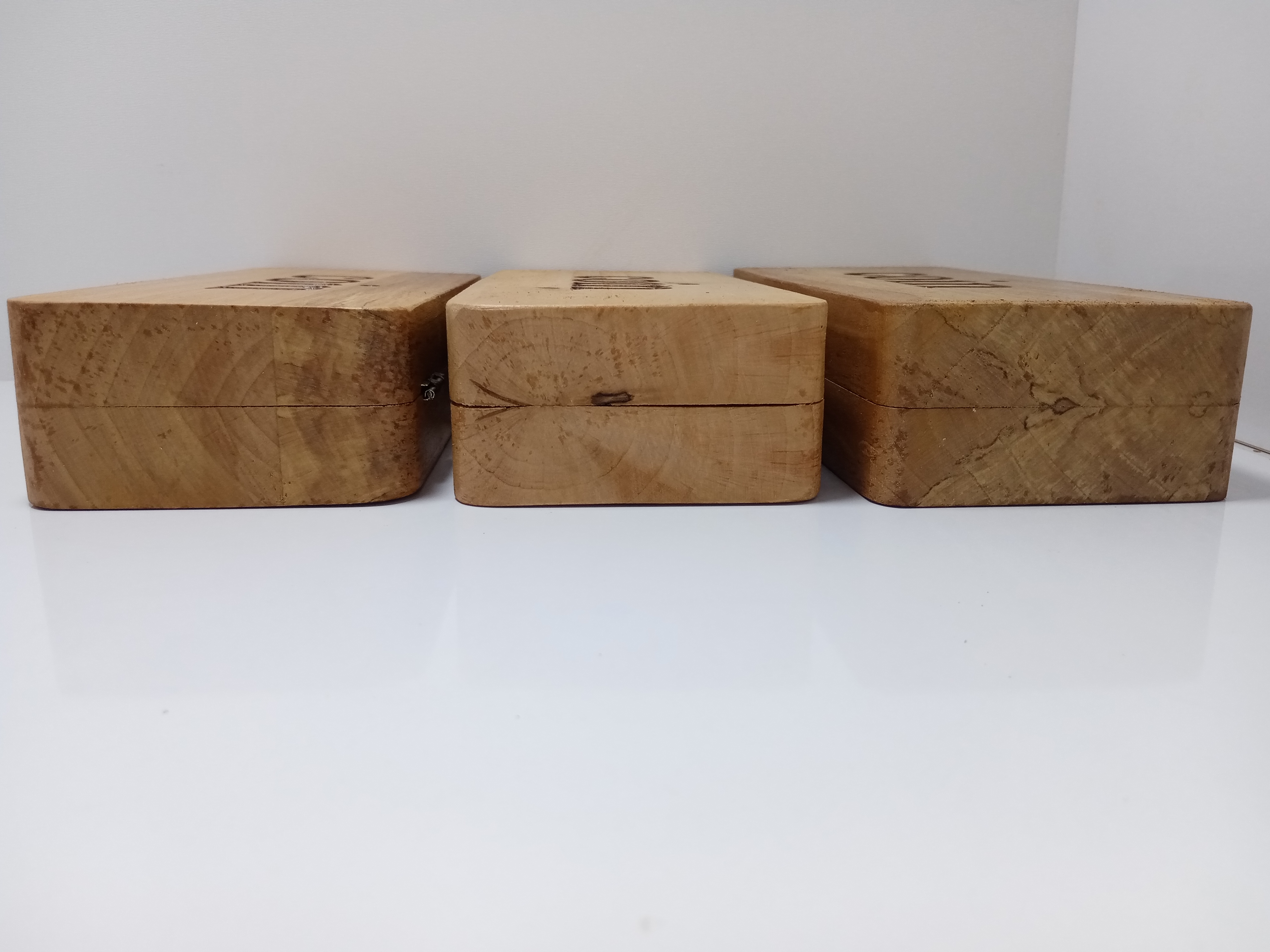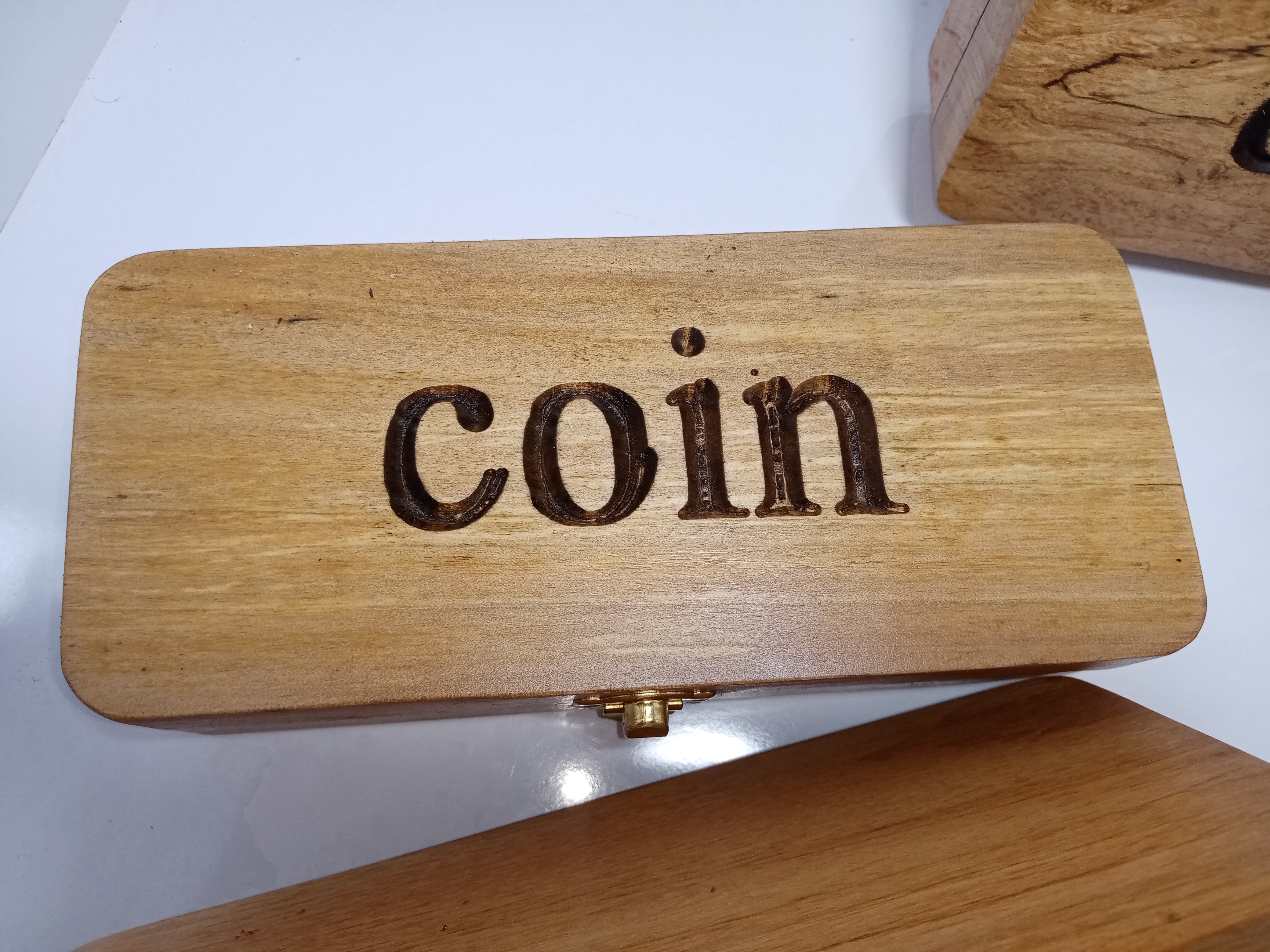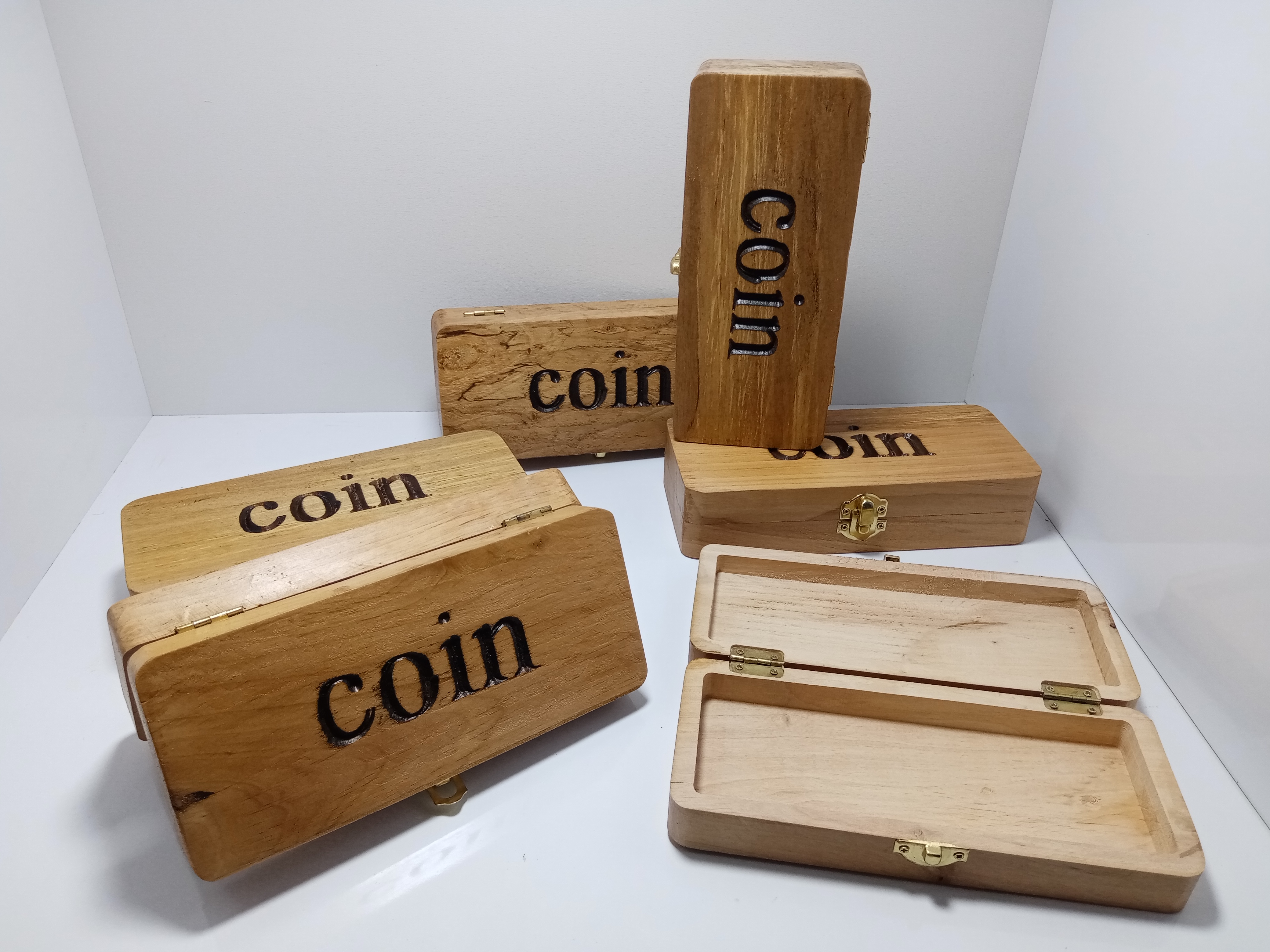 جعبه تمام چوب مخصوص سکه و جواهرات انعطاف پذیر است. از یک تکه چوب توسکا که داخل آن خالی شده استفاده شده و تکه تکه نمی باشد.
